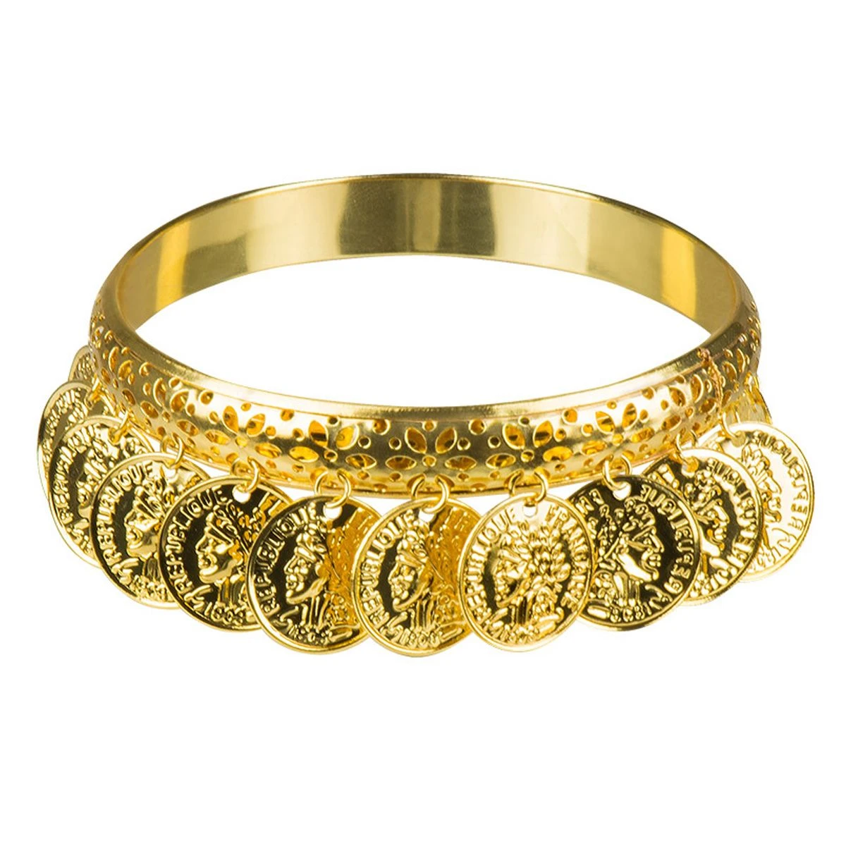 Schitterende gouden armband met muntjes. Een heel mooi accessoire voor een zigeuner- of oosterse outfit zoals een buikdanseres.