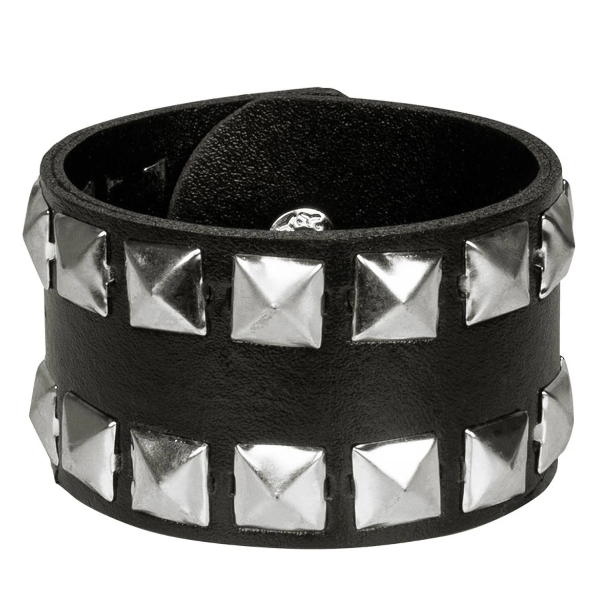 Stoere zwarte armband van kunstleder met studs. Een gaaf accessoire voor je rock of punk outfit!
