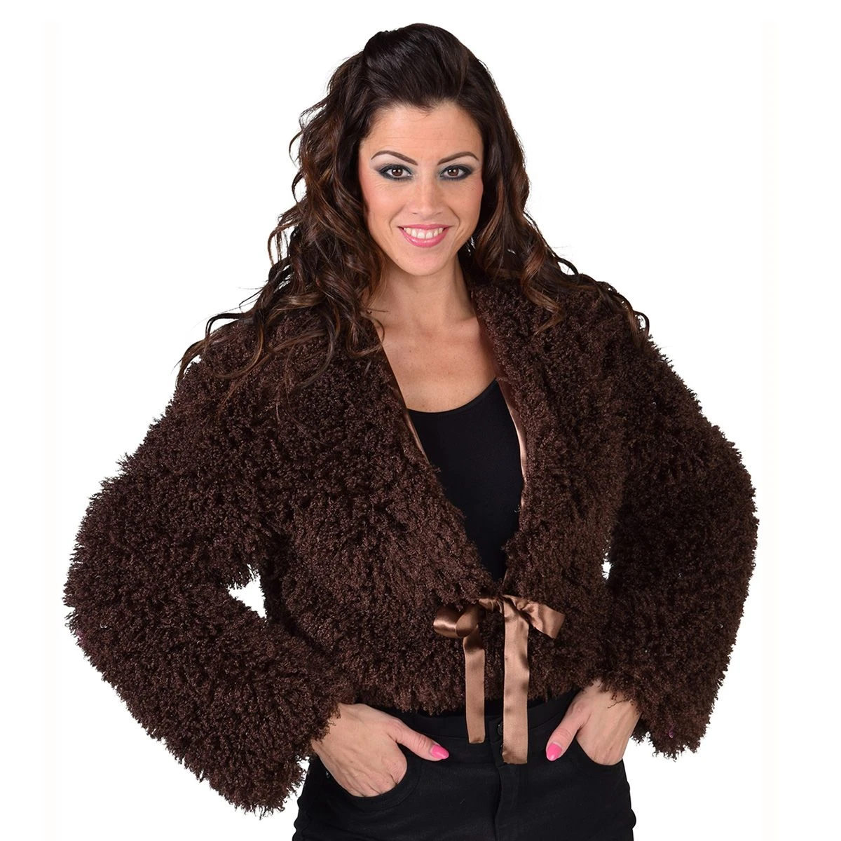 Bruine fluffy bolero met voering