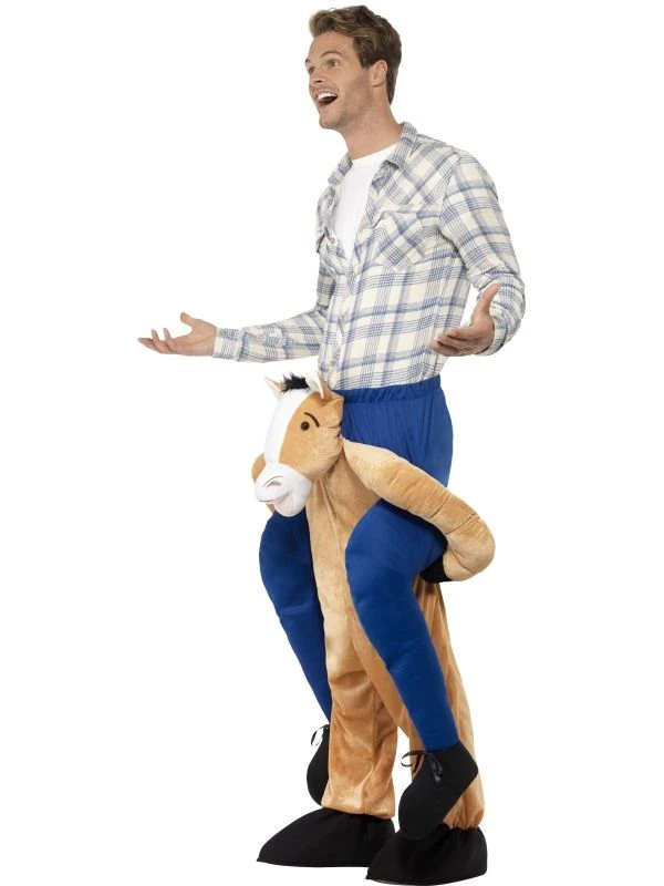 Pluche instap paard kostuum. Een grappig kostuum waar je in stapt zodat het lijkt alsof je op een paard zit.