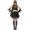 Sexy misdaadbestrijder kostuum. Dit kostuum bestaat uit een zwarte catsuit met ritssluiting aan de voorzijde, een riem en masker met vleermuisoren.