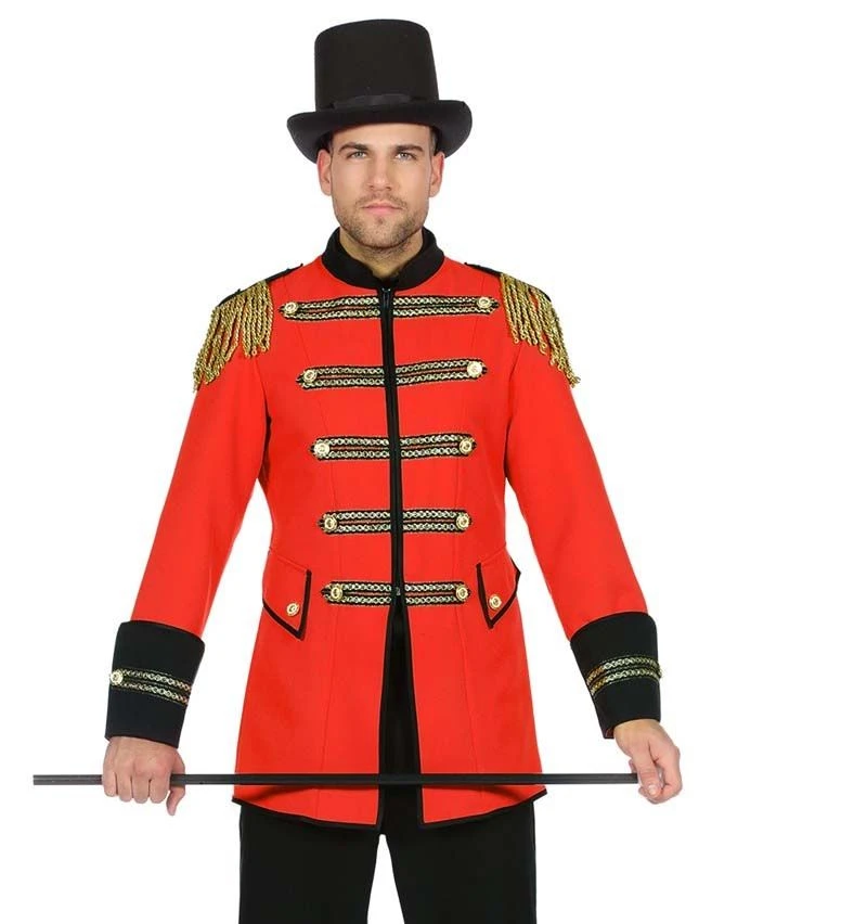 Met deze rode circus herenjas heb je een perfecte outfit voor de Toppers 2018 concerten. Deze rode herenjas is afgewerkt met zwart en goud. De jas heeft epauletten op de schouders en heeft een ritssluiting aan de voorzijde.