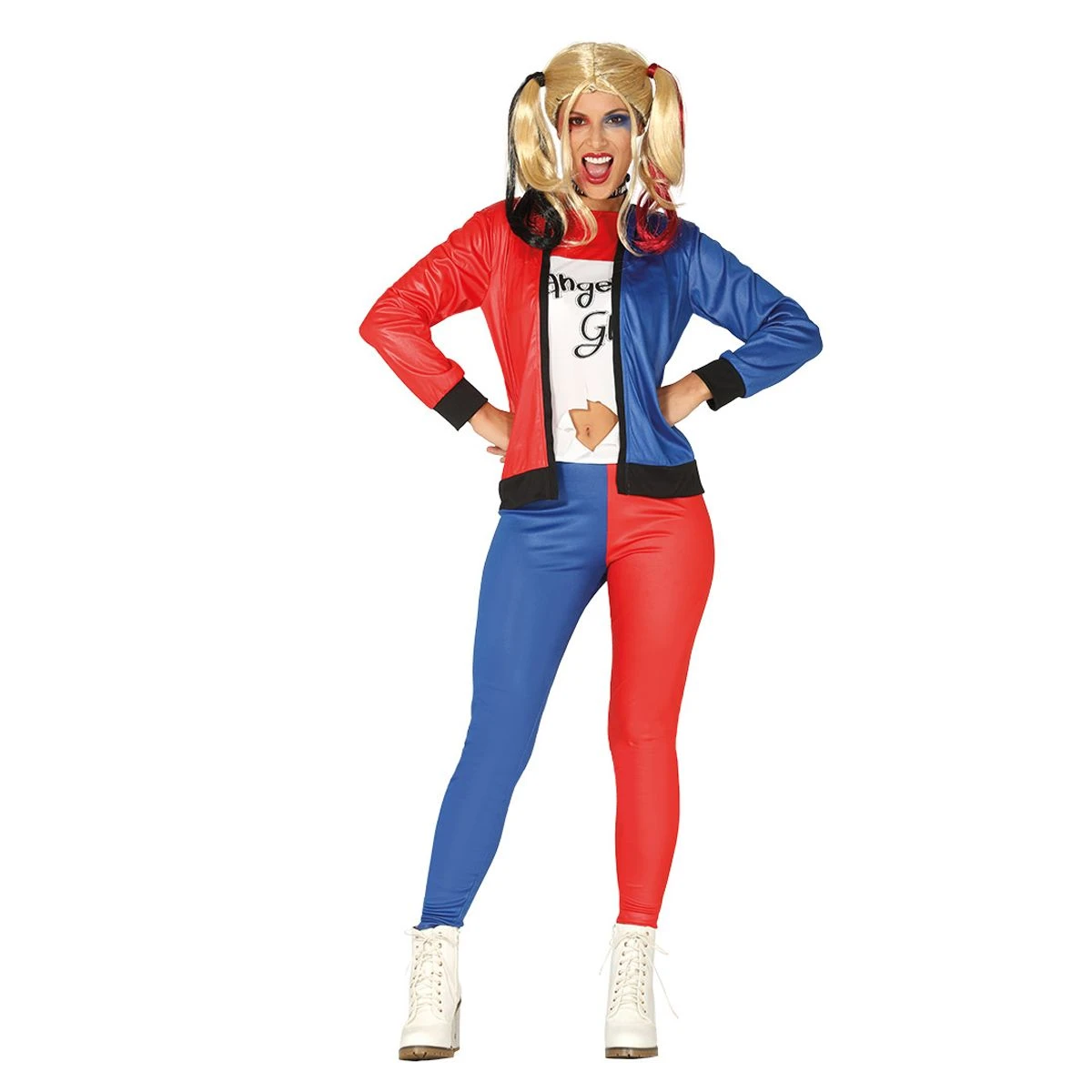 Dit dangerous girl kostuum voor dames bestaat uit een jasje, t-shirt en een broek.
