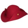 Zwarte driesteek met gouden randjes, veer en rode steen. Geschikt voor een markies of piraat. Onze size.