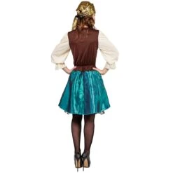 Mooie glimmende blauwe jurk met zwarte tule en een gouden schort. De bovenzijde van de jurk is bruin met wijde witte mouwen en knopen. Wordt geleverd met een gouden hoofdband. Super leuk voor carnaval of een themafeest! Combineer de jurk met gouden oorbellen en een ketting!