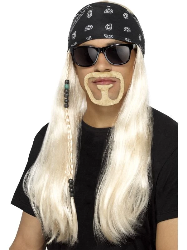 Hard Rocker kit bestaande uit een blonde pruik, baard, bandana en bril.