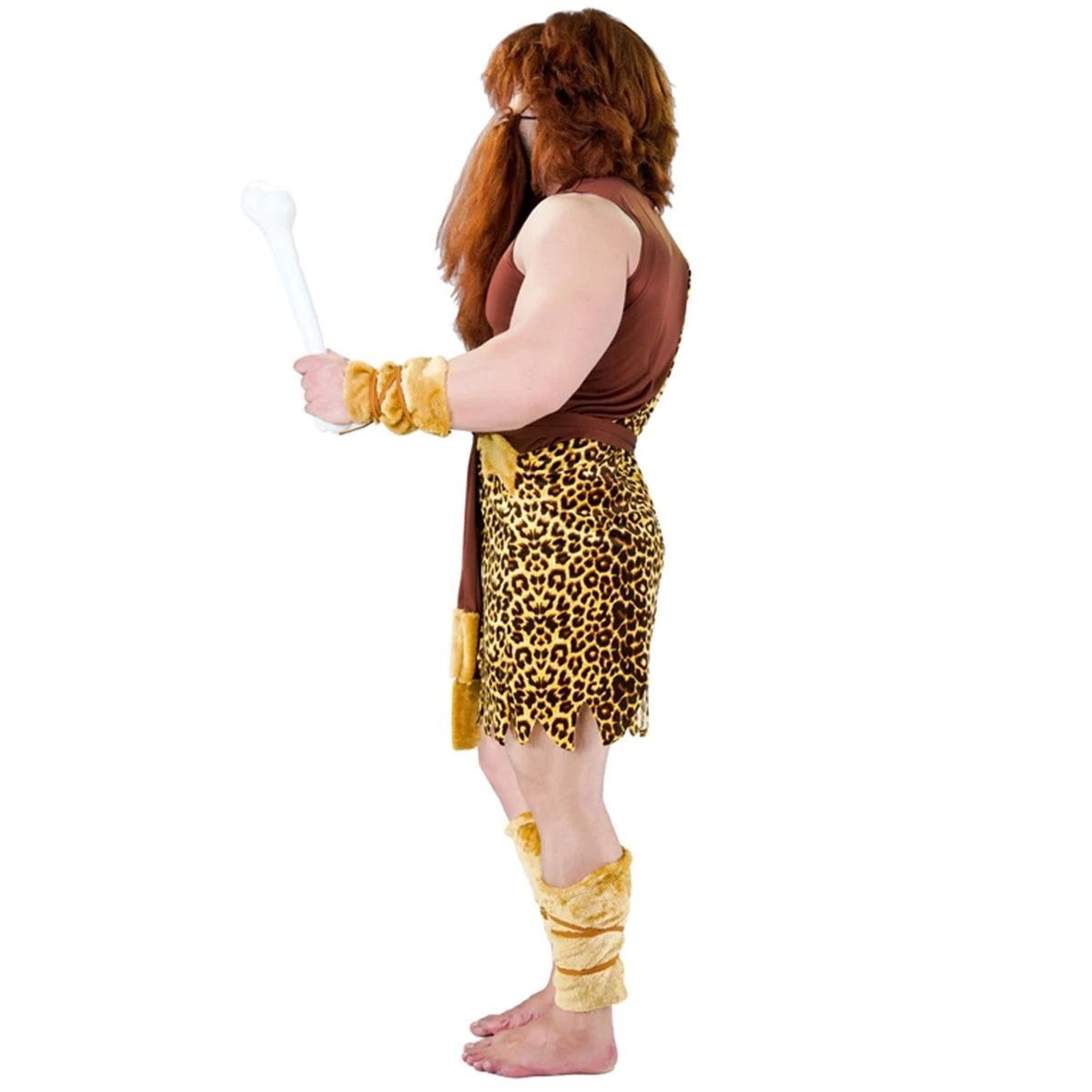 Mooi holbewoner pak bestaand uit: Tuniek met touw, beenwarmers en polswarmers. Beleef een oertijd met dit kostuum!