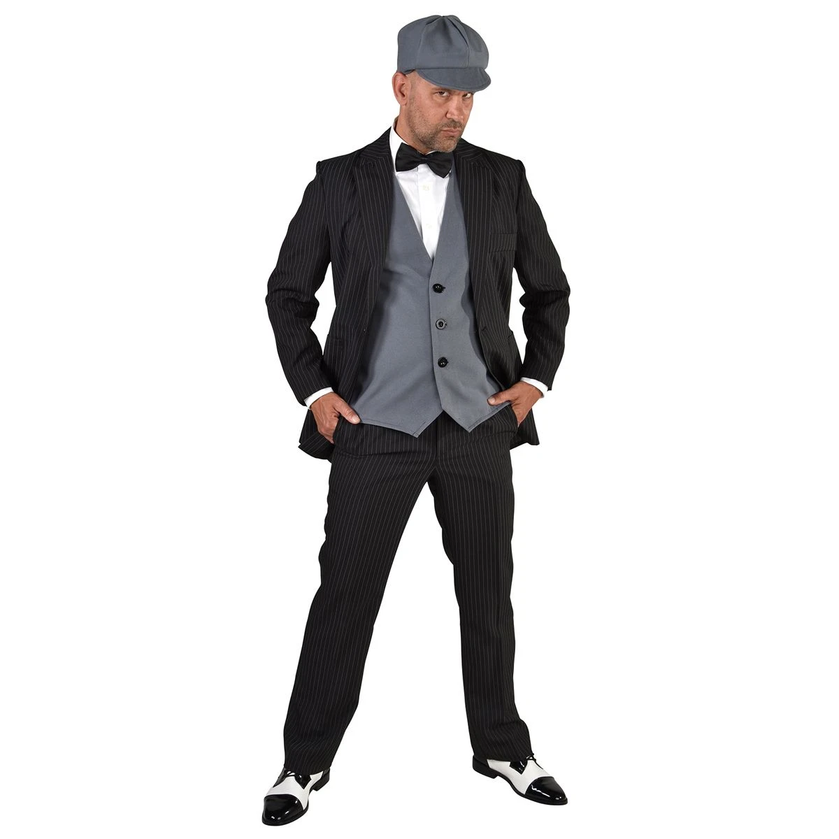 Combineer dit jaren 20 kostuum verder met bijpassende schoenen, sigaretten, sjaal, klokje, bretels en wandelstok voor de echte peaky blinders of ganster look.