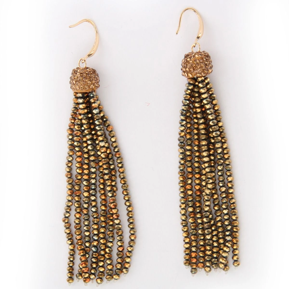Deze luxe set oorbellen laat jouw gezicht stralen. De oorbellen hebben een sprankeling van verschillende goud tinten. Bijpassende ketting is ook verkrijgbaar.