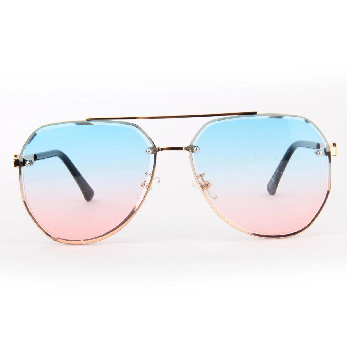 Luxe, stoer model, heren zonnebril met blauw-roze glazen. De poten zijn afgewerkt met steentjes. Met deze bril maak je je outfit helemaal af.