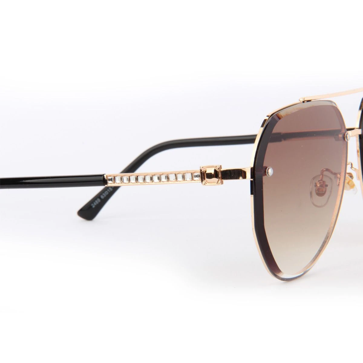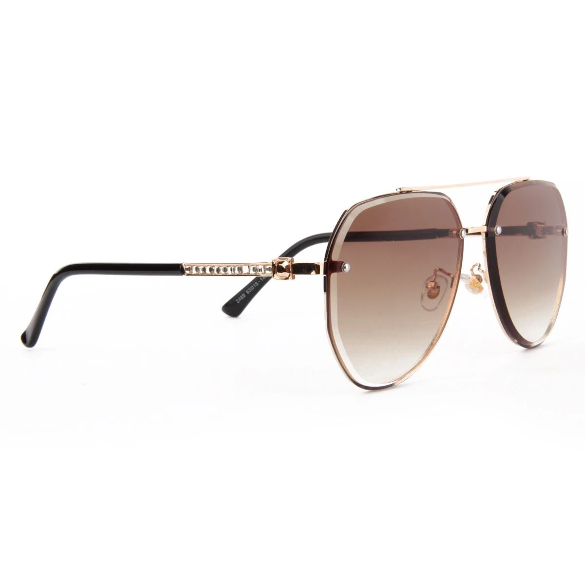 Luxe, stoer model, heren zonnebril met bruine glazen. De poten zijn afgewerkt met steentjes. Met deze bril maak je je outfit helemaal af.