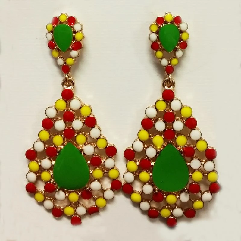 Oetel oorhangers voorzien van rood/wit/gele steentjes.