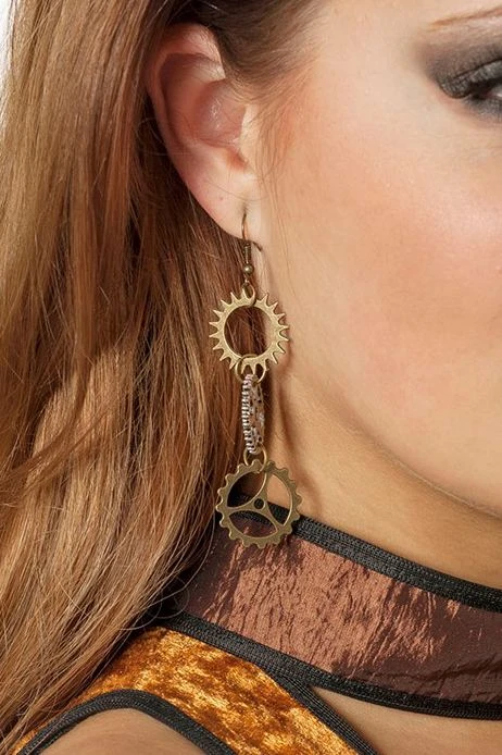 Deze oorbel hangers van aan elkaar gekoppelde tandwielen maken je Steampunk outfit compleet