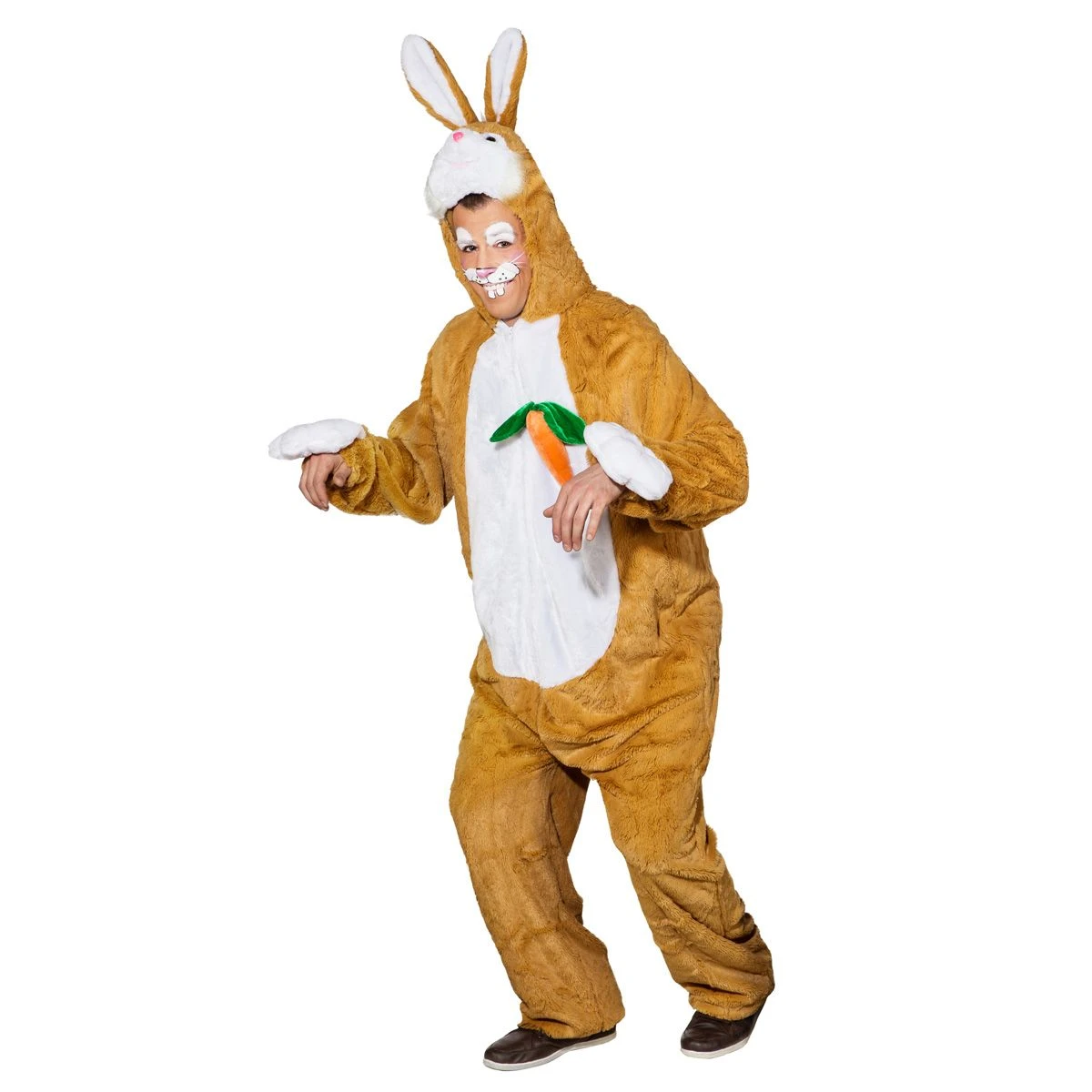 Maak er met dit one-size unisex paashaaspak een echt Paasfeest van! Het spel paaseitjes verstoppen wordt nu nog leuker. Het pak heeft voor een ritssluiting en een capuchon.