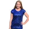 Schitterende pailletten top met ronde hals in sprankelend rood. Het achterpand is van een licht doorschijnende stof zonder pailletten. Onze size met stretch, geschikt voor kleine tot grotere maten (tot 48). Met deze top straal jij op en top!