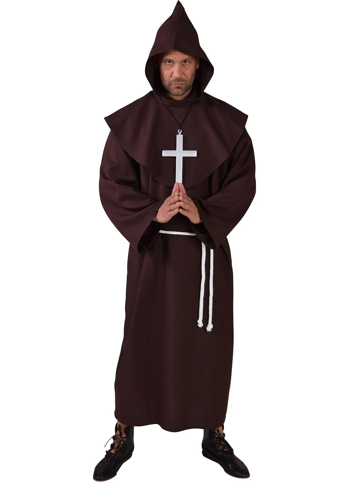 Pater kostuum bestaande uit een kleed, schouderkap en koord.