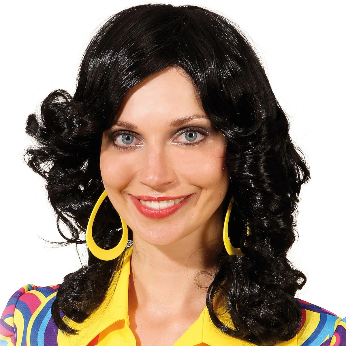 Mooie zwarte pruik met slag en een mooie glans.