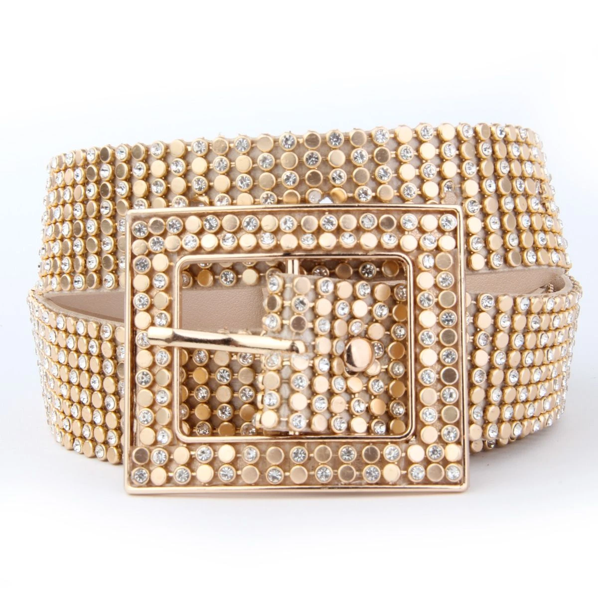 Als dat geen bling-bling is! Deze gouden riem bezet met strass steentjes schittert je tegemoet. Perfect bij je Foute Party of Disco outfit.