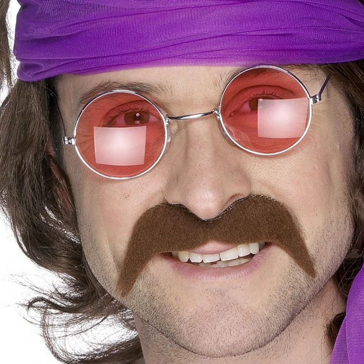 Bruine seventies plaksnor, leuk te combineren met een pruik en bril.