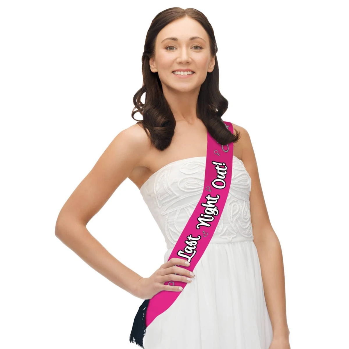 Roze sjerp ‘Last night out’ voor de laatste avond als vrijgezel.