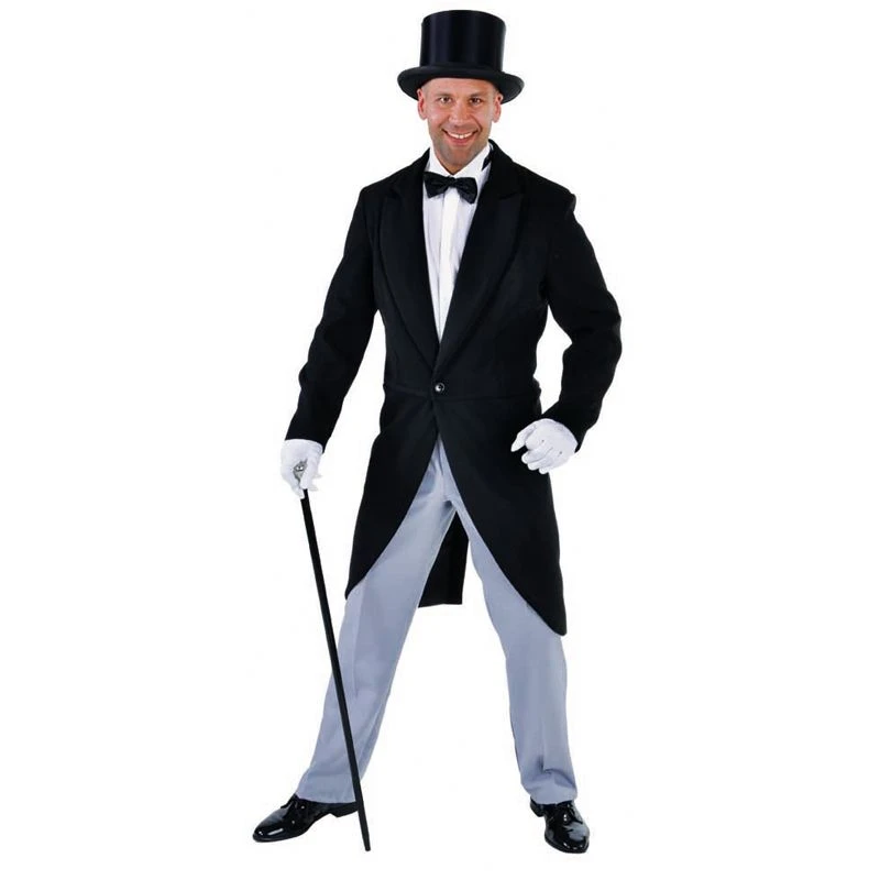 Zwarte slipjas gemaakt van wol ogende zware kwaliteit stof. De jas is ongevoerd, alleen aan de onderkant bij de slip is de jas gevoerd.
