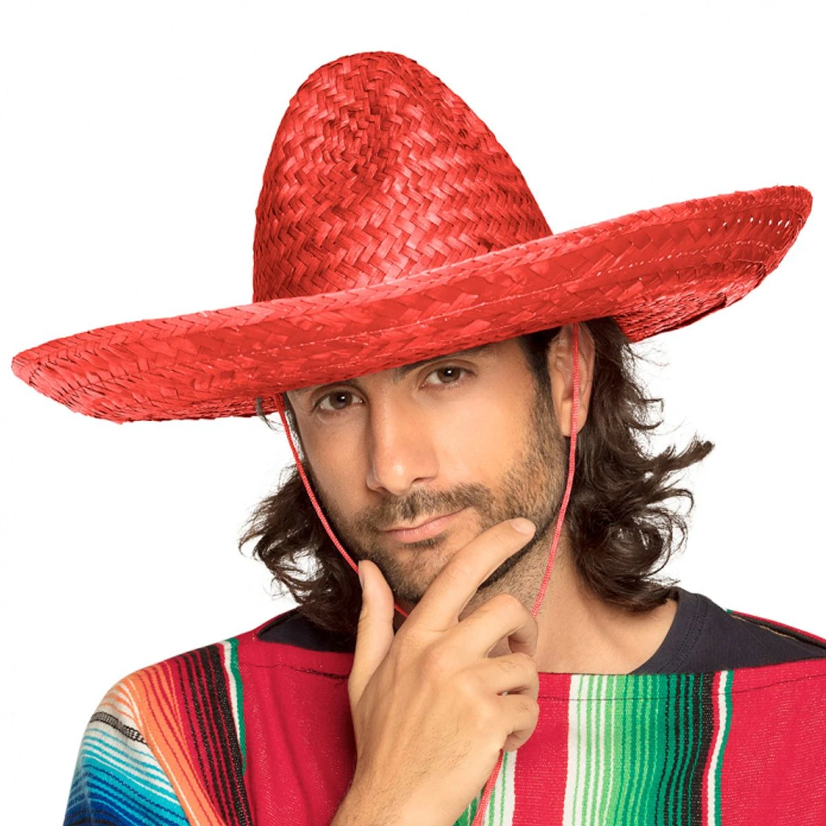 Je staat er gegarandeerd kleurrijk op met deze rode mexicaanse sombrero. Maak je look compleet met een snor en kleurrijke poncho. Viva Mexico!