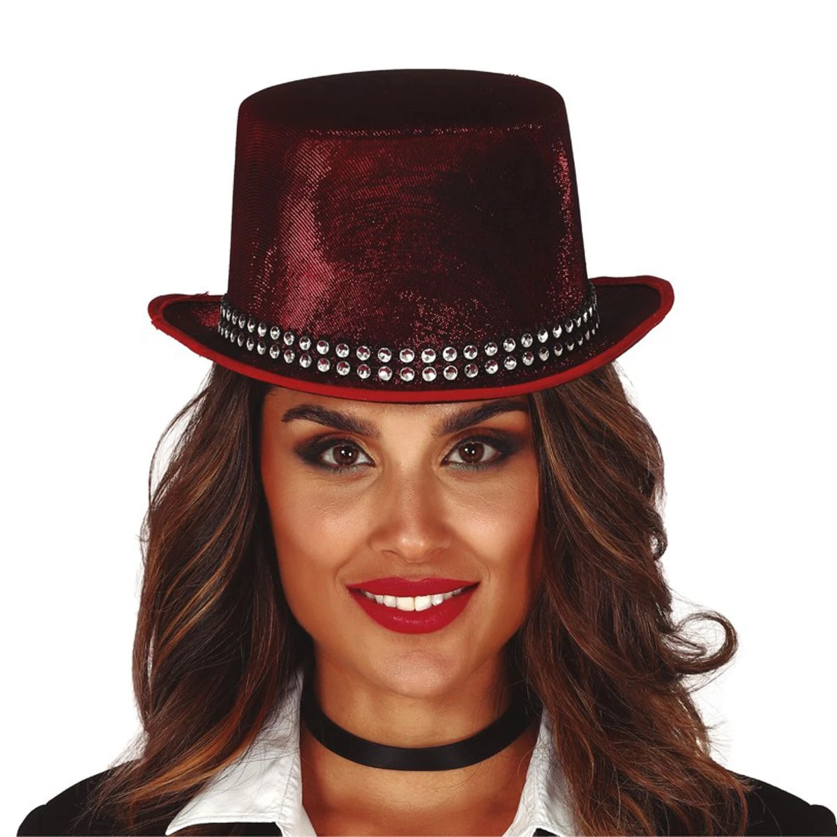 Luxe velours hoge hoed in een mooie bordeaux kleur.