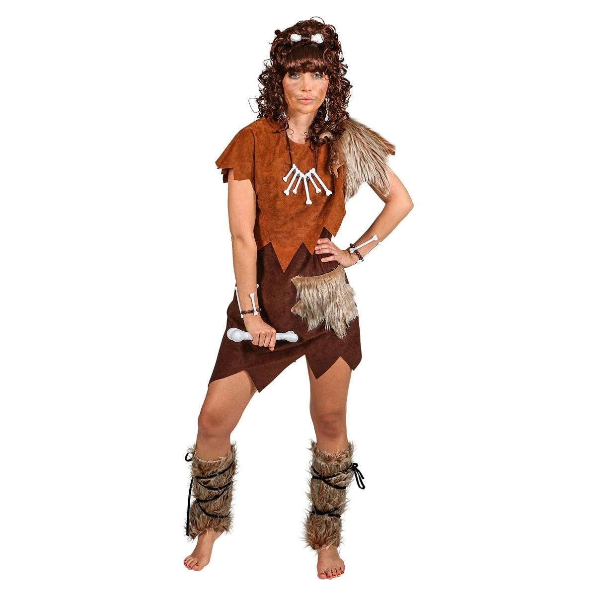 Dit Steinzeit dame kostuum bestaat uit een jurkje en beenwarmers
