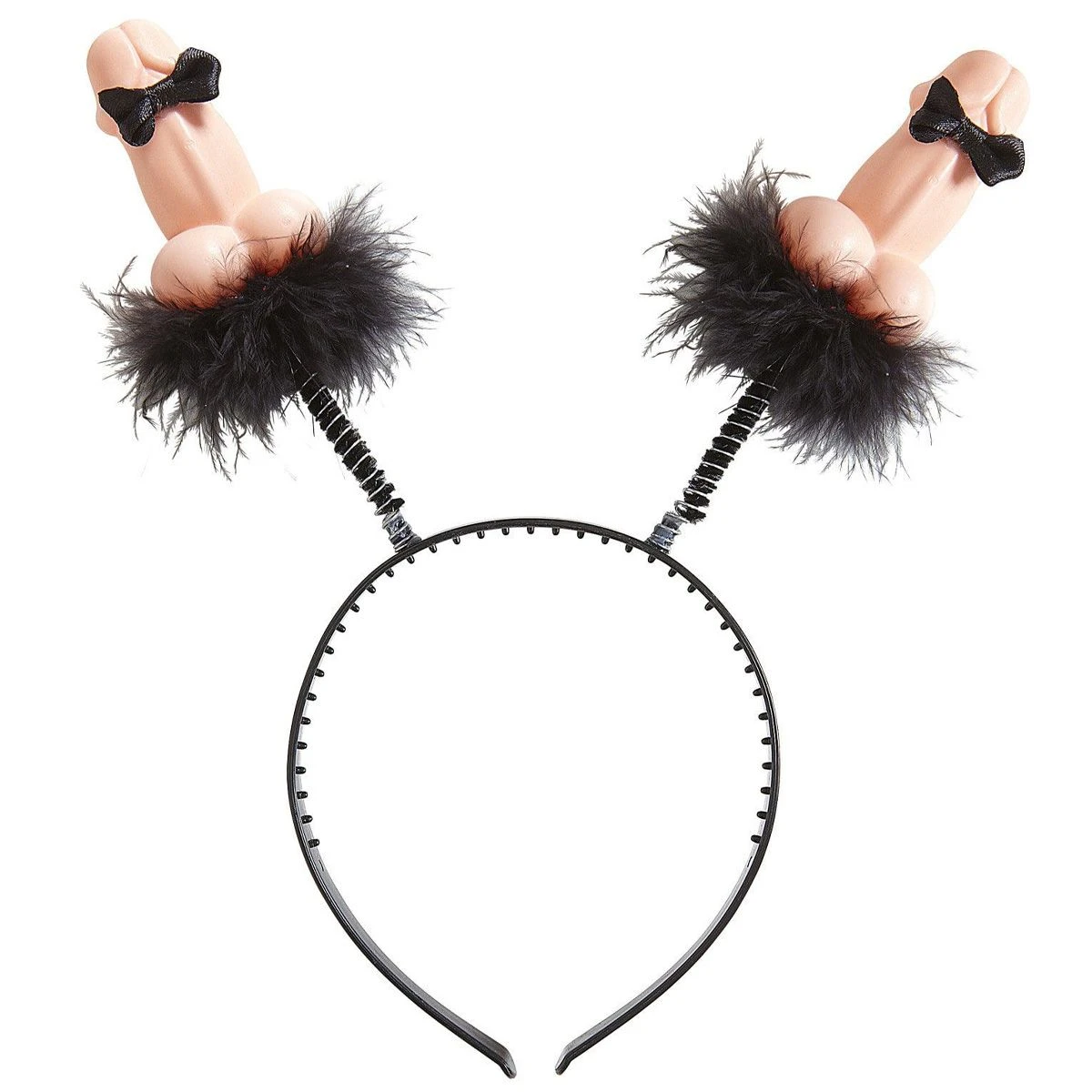 Tiara met 2 wiebelende penissen met strikjes. Super leuk voor een vrijgezellenfeest.