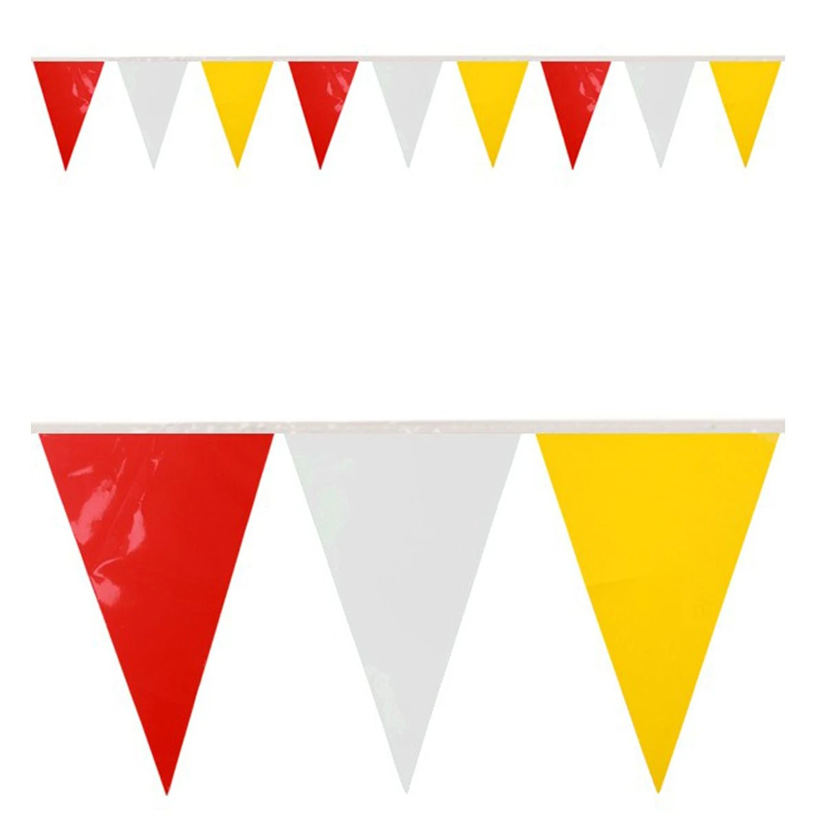 Breng je huis helemaal is sfeer met deze Oeteldonkse, rood-wit-gele vlaggenlijn. Lengte 10 meter, hoogte 30 cm. Brandvertragend.
