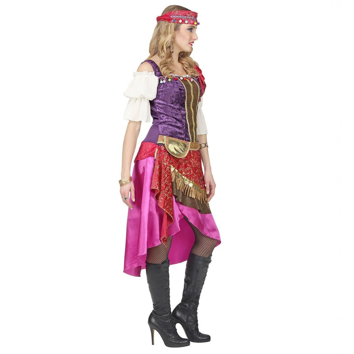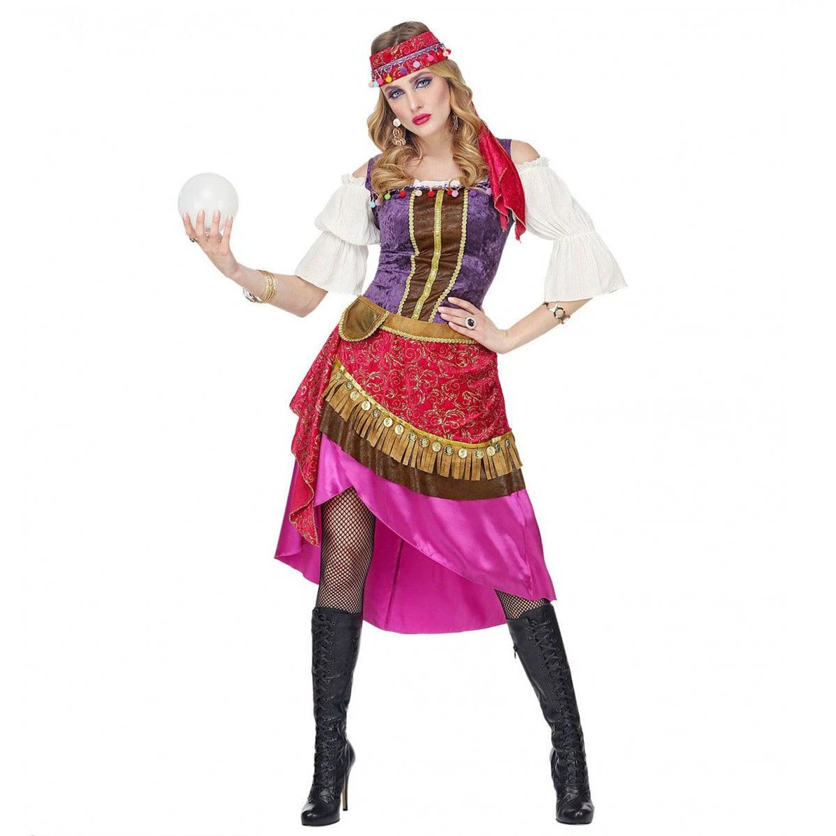 Mooie zigeunerin/waarzegster jurk voor dames. Kostuum bestaat uit jurk en sjaal.