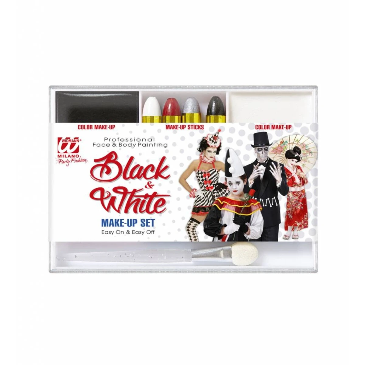 De Make-Up Set, Zwart/Wit bestaat uit de volgende elementen: 4 make-up sticks, applicator, make-up. Dit product valt onder de categorie: Schmink Artikelen