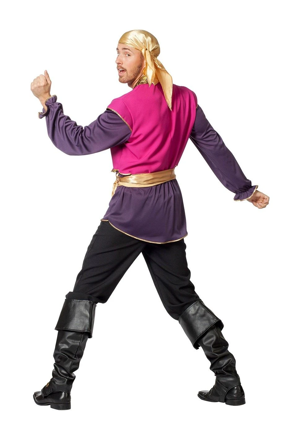 Zigeuner heer in het paars. Dit zigeuner kostuum bestaat uit een hemd, bandana en sjerp.